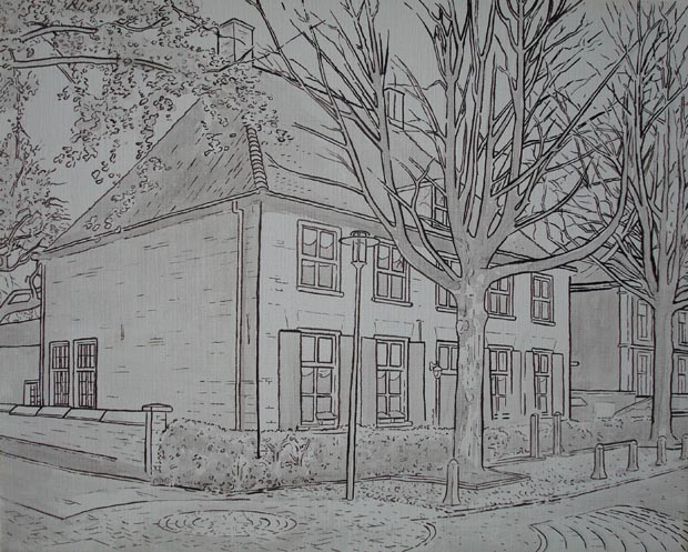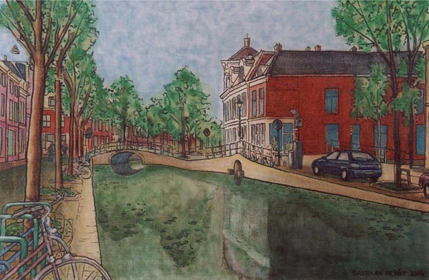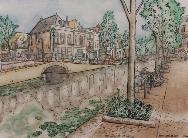 titel: gezicht op de Nieuwe Rijn in Leiden